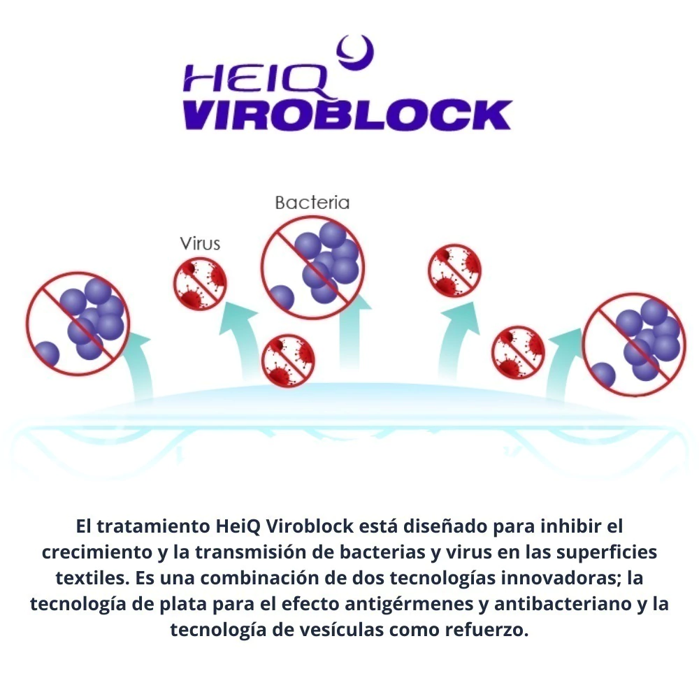 Está revestido con un tejido de punto con tecnología suiza ANTI VIRAL que combina partículas de plata antibacteriana con tecnología antiviral por agotamiento de la vesícula lipídica del virus (Único tratamiento testeado frente al SARS-Cov2 con un 99.99% de efectividad según ISO 18184 y con igual eficacia antibacteriana según ISO 20743)