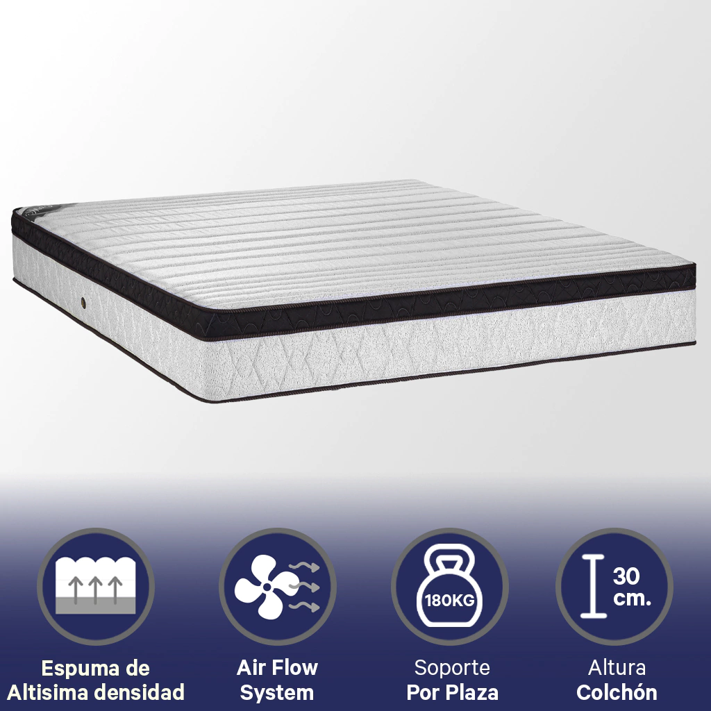 El colchón Titanium con su imponente presencia refleja su interior; un núcleo de Espuma High Support de 60 kg/m3 de densidad junto a la correcta proporción de mantas firmes y suaves PU Flex multiconfort, logran la combinación perfecta de soporte y confort. Especialmente recomendado para personas de gran contextura física y/o con problemas de columna, este producto otorga el soporte perfecto brindando la resistencia necesaria para una correcta postura corporal, mejorando la circulación sanguínea y la relajación de los músculos logrando un sueño saludable y placentero. Su exterior revestido de un exquisito tejido de punto totalmente matelasseado junto a sus cuidados detalles de terminación, lo convierten en el producto ideal para usuarios exigentes.
