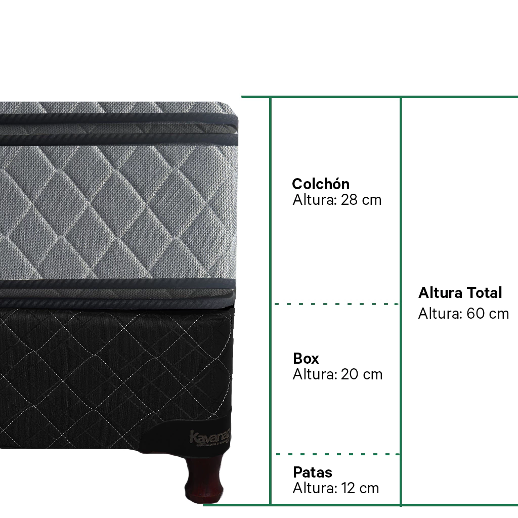 Este conjunto esta compuesto por el colchón Coral, que cuenta con un núcleo de 30 kg/m3 de densidad que le da el soporte y la resistencia ideales para un descanso renovador. Revestido con tela de jackard de origen europeo con doble pillow top para que lo puedas rotar y dar vuelta, alargando así su vida útil, combinado con un sommier de madera revestido en tela Jacquard matelaseada color negro y hermosas patas de madera torneada. Es uno de los productos más elegidos por su excelente relación precio-calidad.