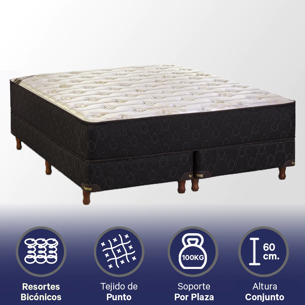 Pensado para usuarios exigentes, el colchón Optimus ha sido fabricado con selectos e innovadores componentes. Su base de Resortes Bicónicos fabricados con el mayor diámetro de acero del mercado, sumado a la combinación perfecta de espumas firmes y suaves en su adecuada proporción, brinda un excelente soporte sin alterar el alto grado de confort que lo caracteriza.