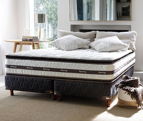 Compuesto por una estructura de Resortes Bicónicos con doble marco perimetral de acero templado y estabilizadores laterales, que sumados a sus rellenos de excelente calidad, otorgan el soporte necesario para un descanso renovador. Su elegante doble Pillow Top y su revestimiento en tejido de punto totalmente matelasseado, le da el toque justo de suavidad y confort.
